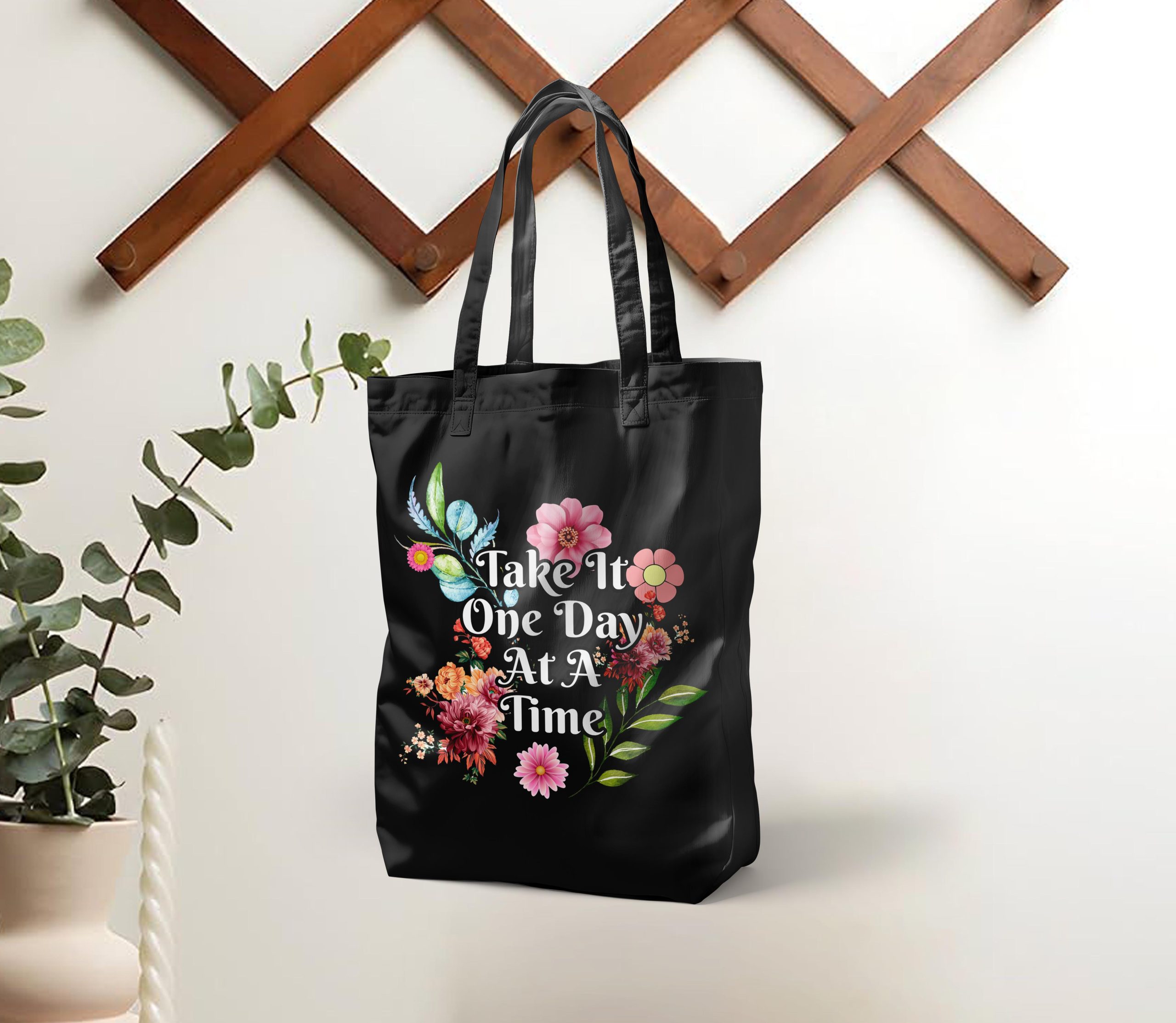 Carry calm wherever you go with this “One Day at a Time” inspirational tote bag – a gentle reminder to slow down, breathe, and embrace the present. Designed with minimal yet impactful typography, this eco-friendly canvas bag is perfect for daily errands, book lovers, or anyone on a journey of healing, mindfulness, or personal growth.